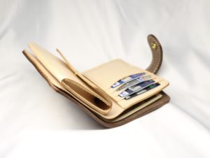 エンジ色のヌメ革ハーフウォレットの小銭入れ部分