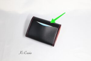 同じく黒と赤のヌメ革で小型財布も製作しました。
