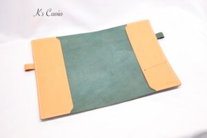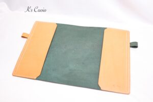 今回、カスタマイズのご要望をいただき、グリーン色とオレンジ色のヌメ革で製作しました。