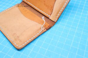 新しい革でミミを作り、縫い付けていきます。