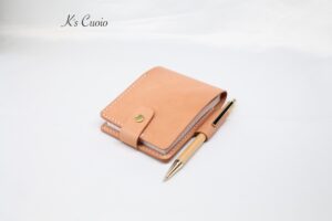 書きやすく、持ち運びやすく、長く使えること考え、メモ帳カバーを製作しました。