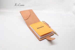今回はRhodiaのメモ帳No.1専用に設計した、ペン差し付きのメモ帳カバーです。