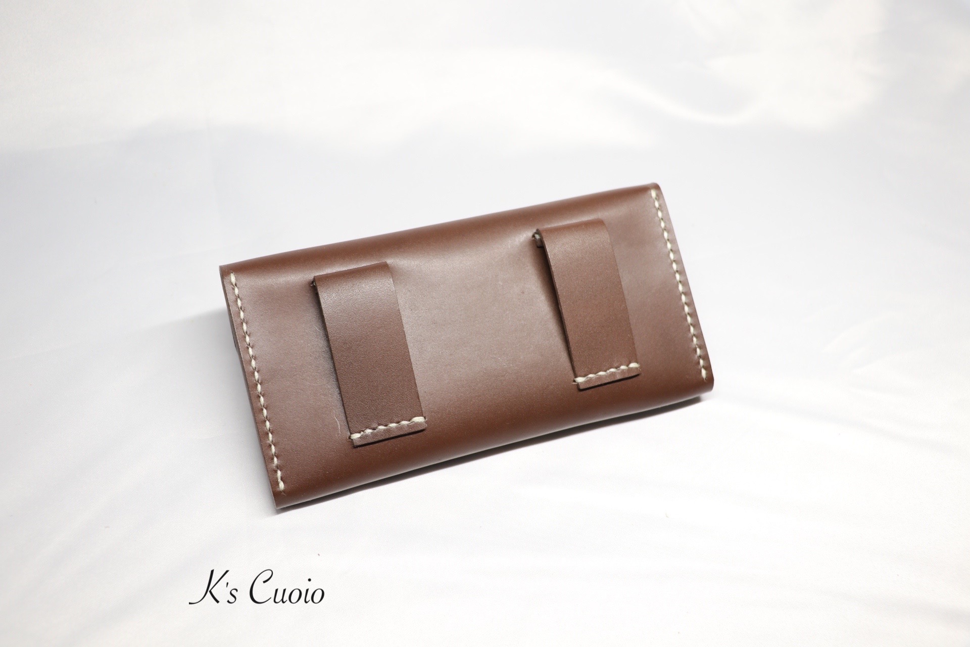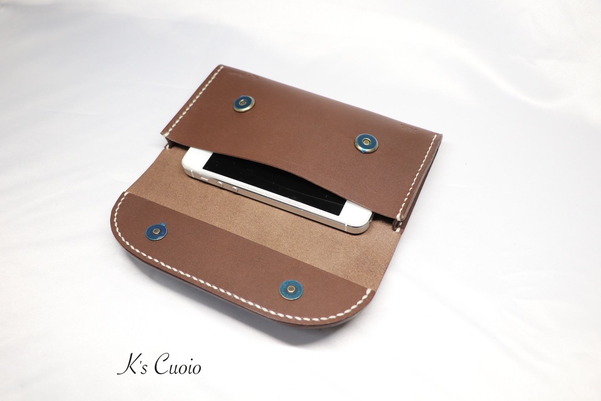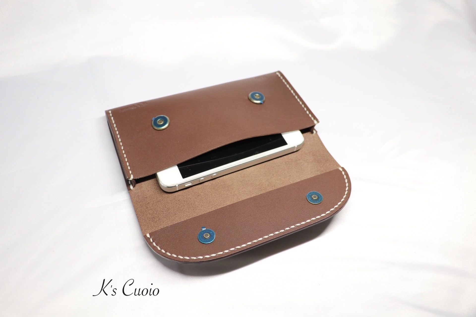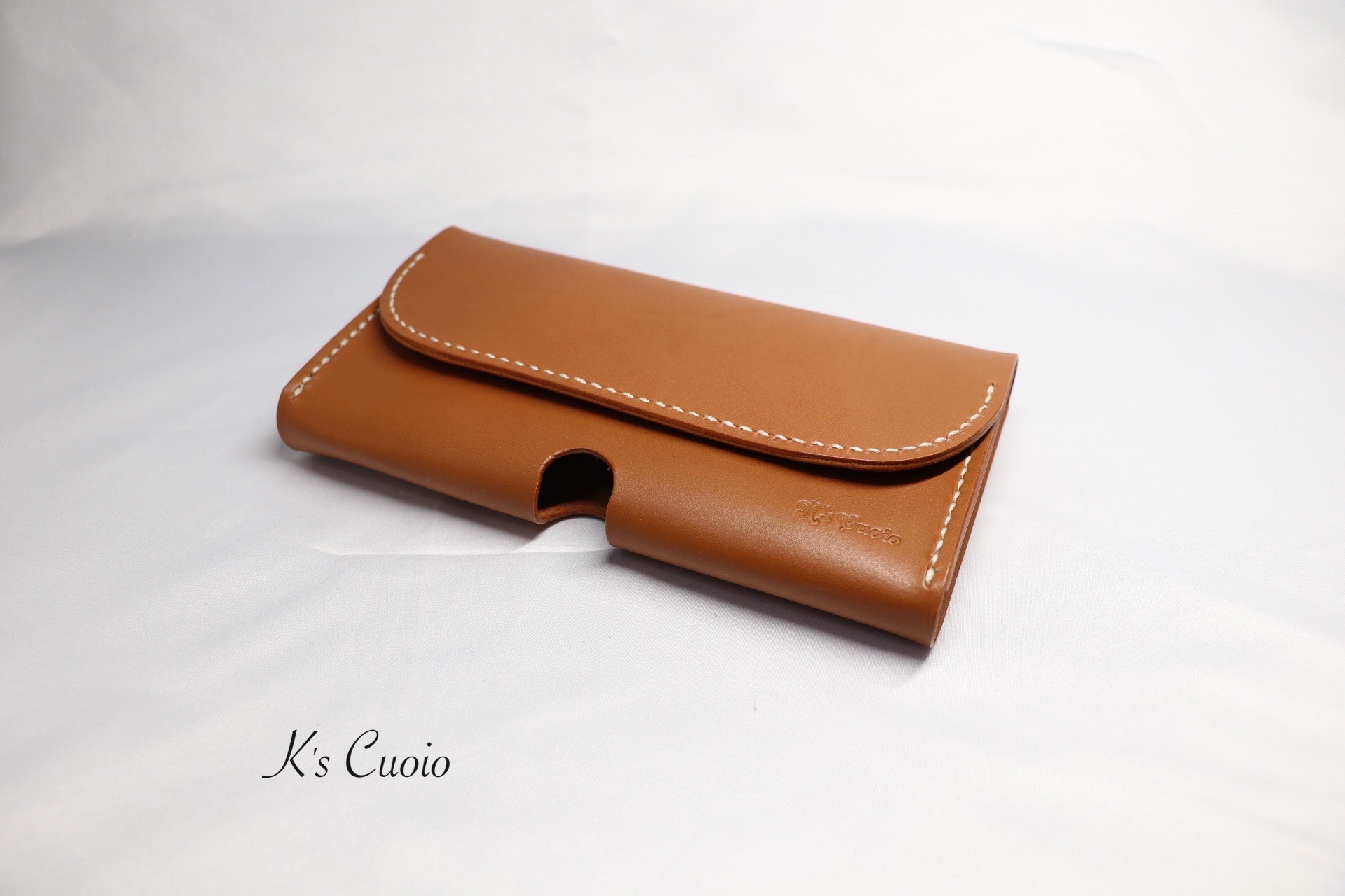ヌメ革 ベルト通し型スマホケース横型(ダークブラウン色)